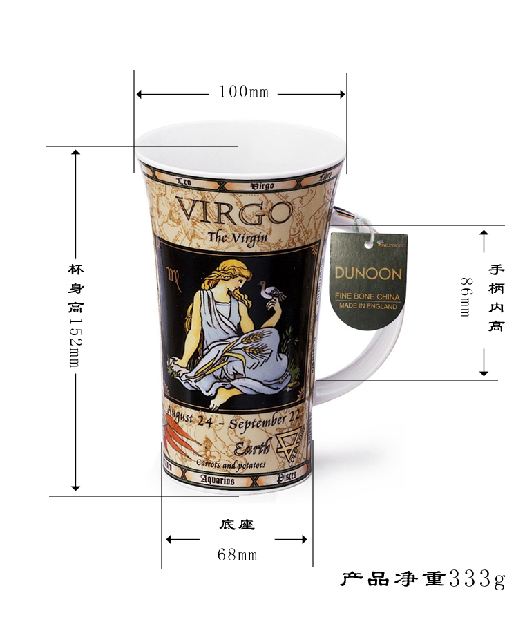 | 英国骨瓷水杯 十二星座系列 薄如纸 透入镜 声如磬 白如玉 |